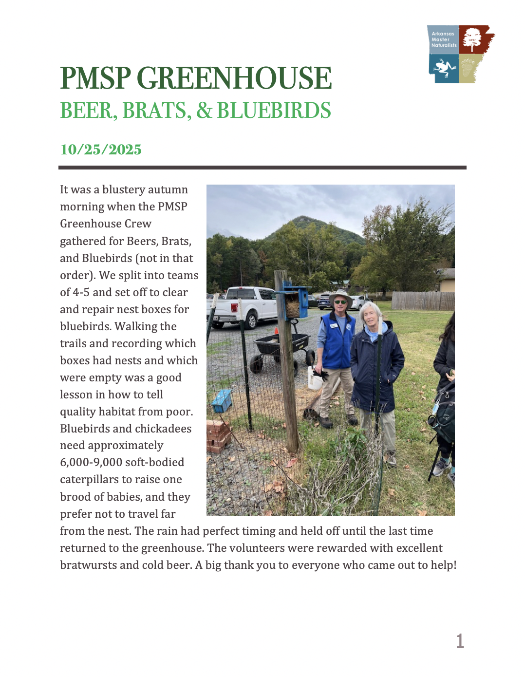 We need some additional volunteer help with the Winter Holiday Party in the form of setting up chairs and tables in advance (4:30 p.m. on Thursday, December 11 at Witt Stephens Jr. Central AR Nature Center, and help taking them down and cleaning up afterward. Faith Morrison and the Enhancemators will be there, but they need a little more help. Please reply to anneholcomb@sbcglobal.net. | Photos by Bill Toland and Katie Sakevicius | Oaktober 2025 Wrap-Up