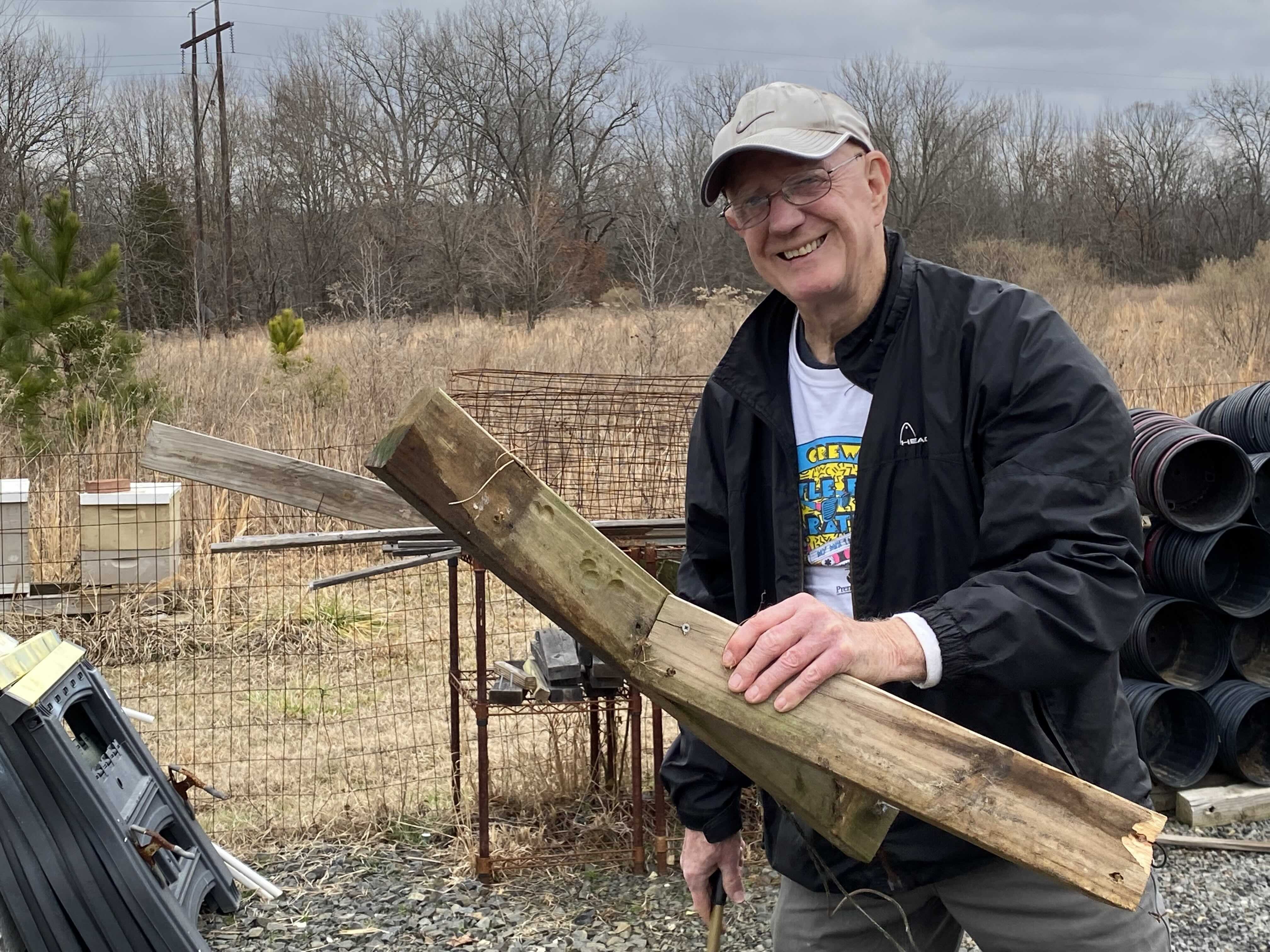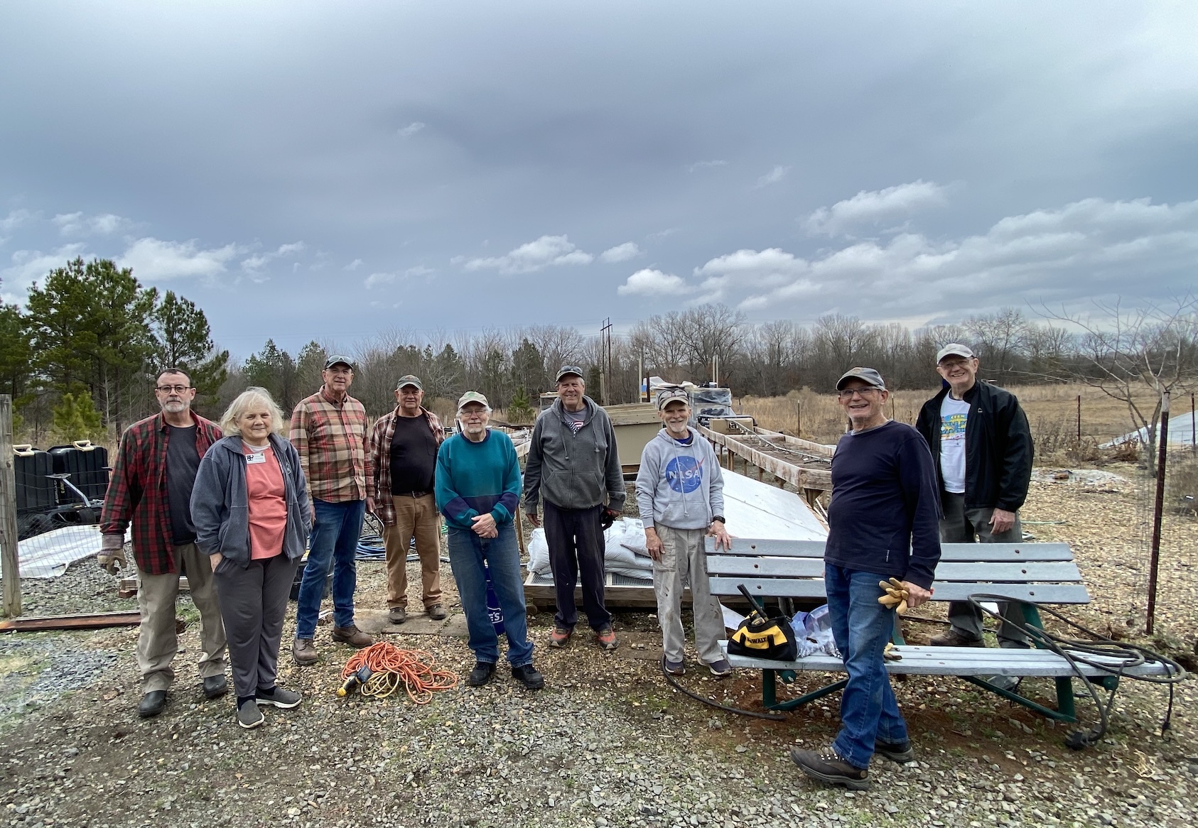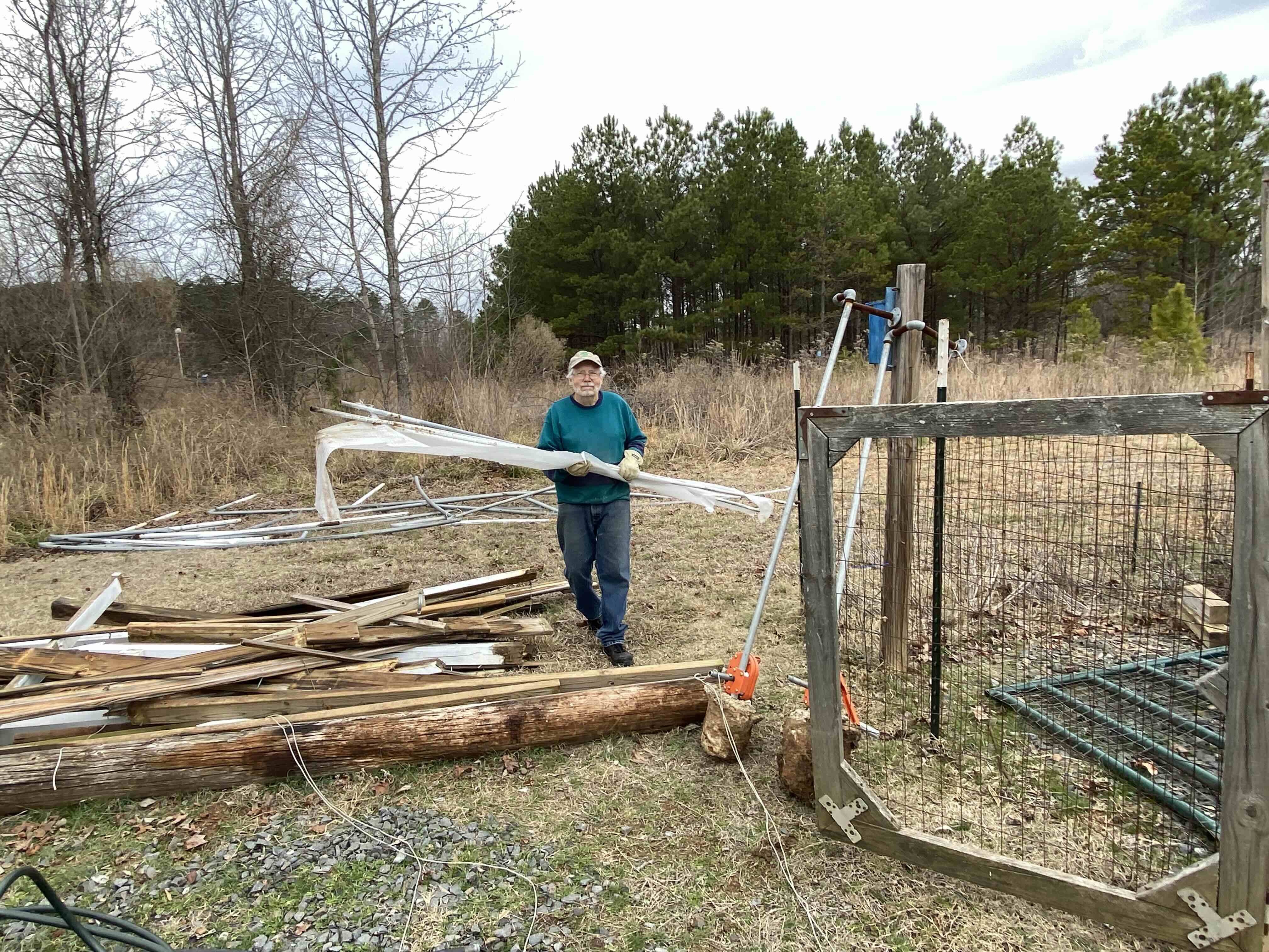 Winter storm Fern did a number on the CAMN greenhouse back in January by collapsing the entire structure. On Tuesday, February 10, eleven CAMNers under the supervision of Bill Toland met at 9:00 a.m. to begin the dismantling process, sorting reusuable parts from pieces that were now destined for the trash pile. Thanks to power drills and screwdrivers, metal-cutting saws, hammers, knives, prybars, and a good bit of elbow grease, two hours later the group had made considerable headway. Thanks to Bill Toland, Paul Gosnell, Bill Williams, Frank Meeks, Reed Green, Cindy Hancock, Frank Olinde, Ron Rowland, Mark Matteson, David Holcomb, Anne Holcomb. | | | Frank dismantling door frame |  | David Holcomb- parts is parts | | |